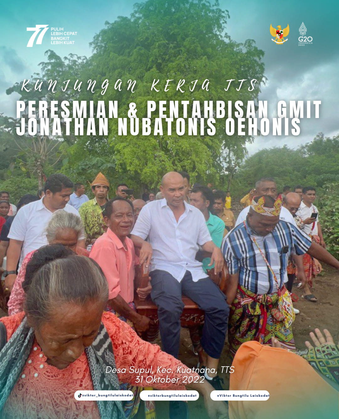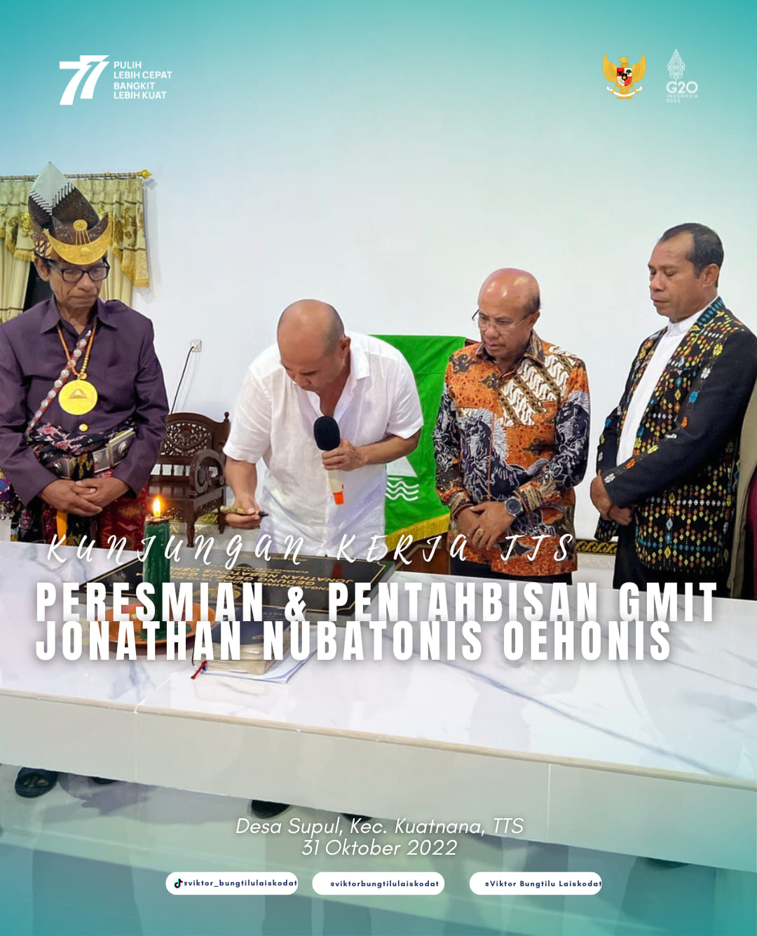 Dalam kesempatan ini, Bupati TTS Egusem Pieter Tahun menyampaikan terima kasih kepada Jonathan Nubatonis. “Gereja bukanlah hanya bangunan tetapi menjadi gereja yang hidup, bertumbuh dan berbuah dimana setiap anggota dalam gereja memiliki kepedulian satu terhadap yang lain. “Biarlah dihari Pentahbisan Gereja Jonathan Nubathonis Oehonis dan dalam memperingati hari Reformasi Gereja serta ulang tahun GMIT, Gereja semakin berkomitmen untuk menjadi berkat bagi masyarakat,” kata Egusem.