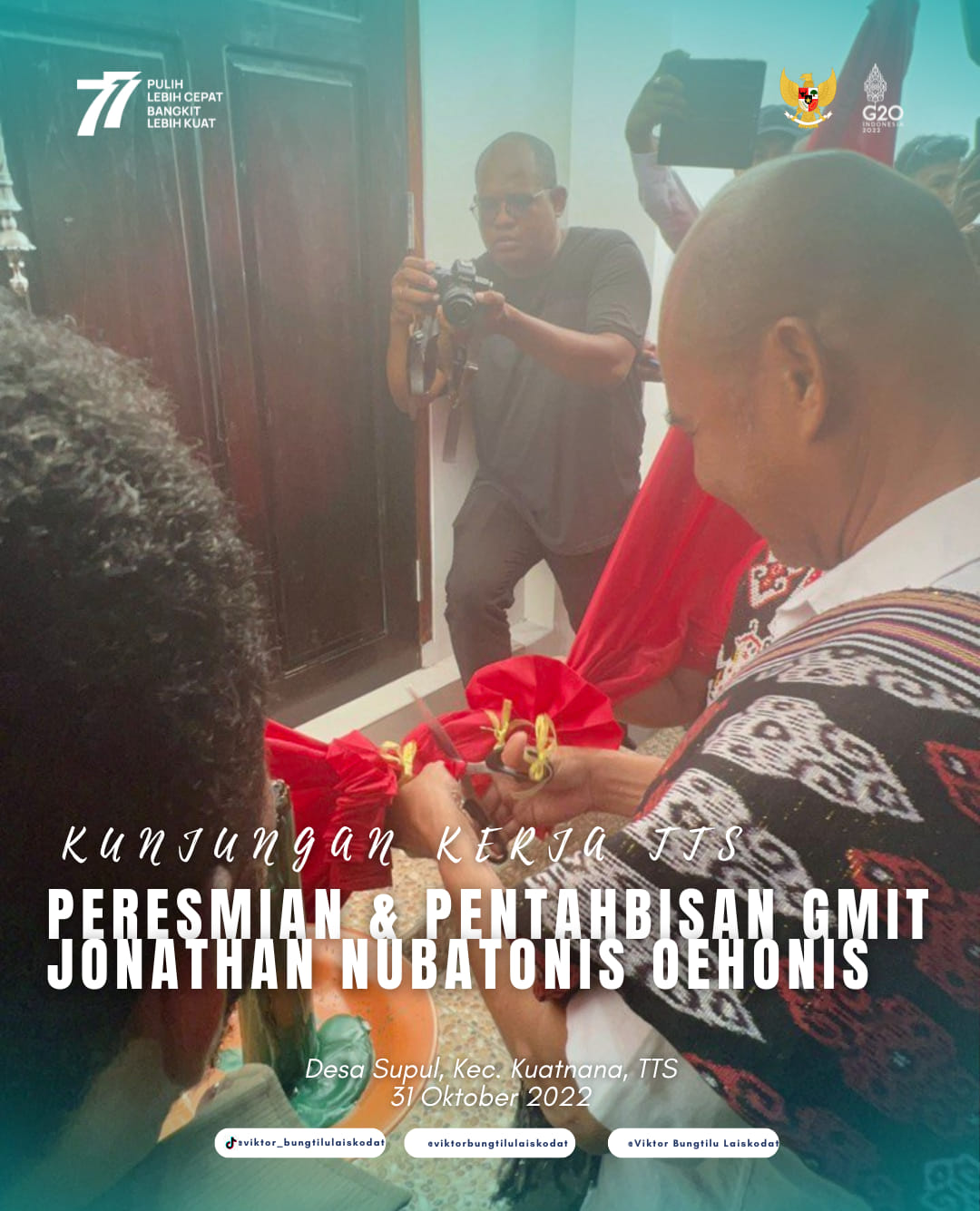 Gubernur mengucapkan terimakasih kepada Bupati dan Wakil Bupati TTS, Sinode GMIT, Ketua Majelis Jemaat, Anggota DPRD Provinsi, dan juga kepada Bapak Jonathan Nubatonis dan keluarga yang telah berpartisipasi dalam pembangunan serta semua pihak yang telah terlibat dalam pembangunan Gedung Gereja GMIT Jonathan Nubathonis Oehonis.