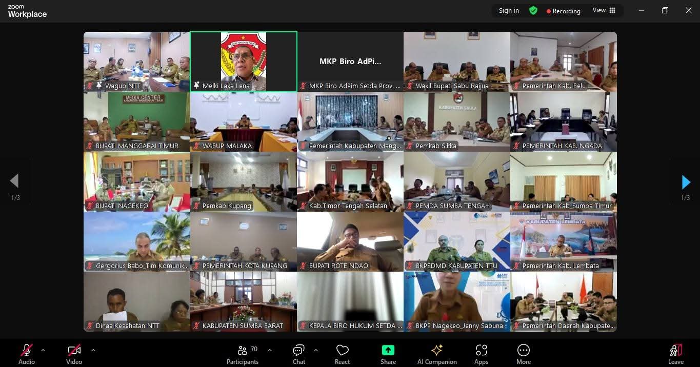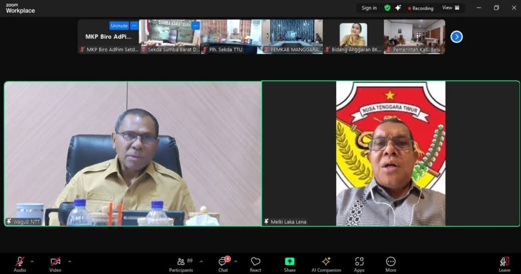 Expontt.com – GUBERNUR NTT, Emanuel Melkiades Laka Lena bersama Wakil Gubernur NTT, Johni Asadoma memimpin Rapat Koordinasi secara virtual bersama para Bupati dan Wali Kota se-NTT serta jajaran pejabat lingkup Pemprov NTT dalam rangka membahas dampak kebijakan pembatasan belanja pegawai maksimal 30 persen terhadap keberlanjutan status Pegawai Pemerintah dengan Perjanjian Kerja (PPPK), pada Selasa (3/3/2026) siang.