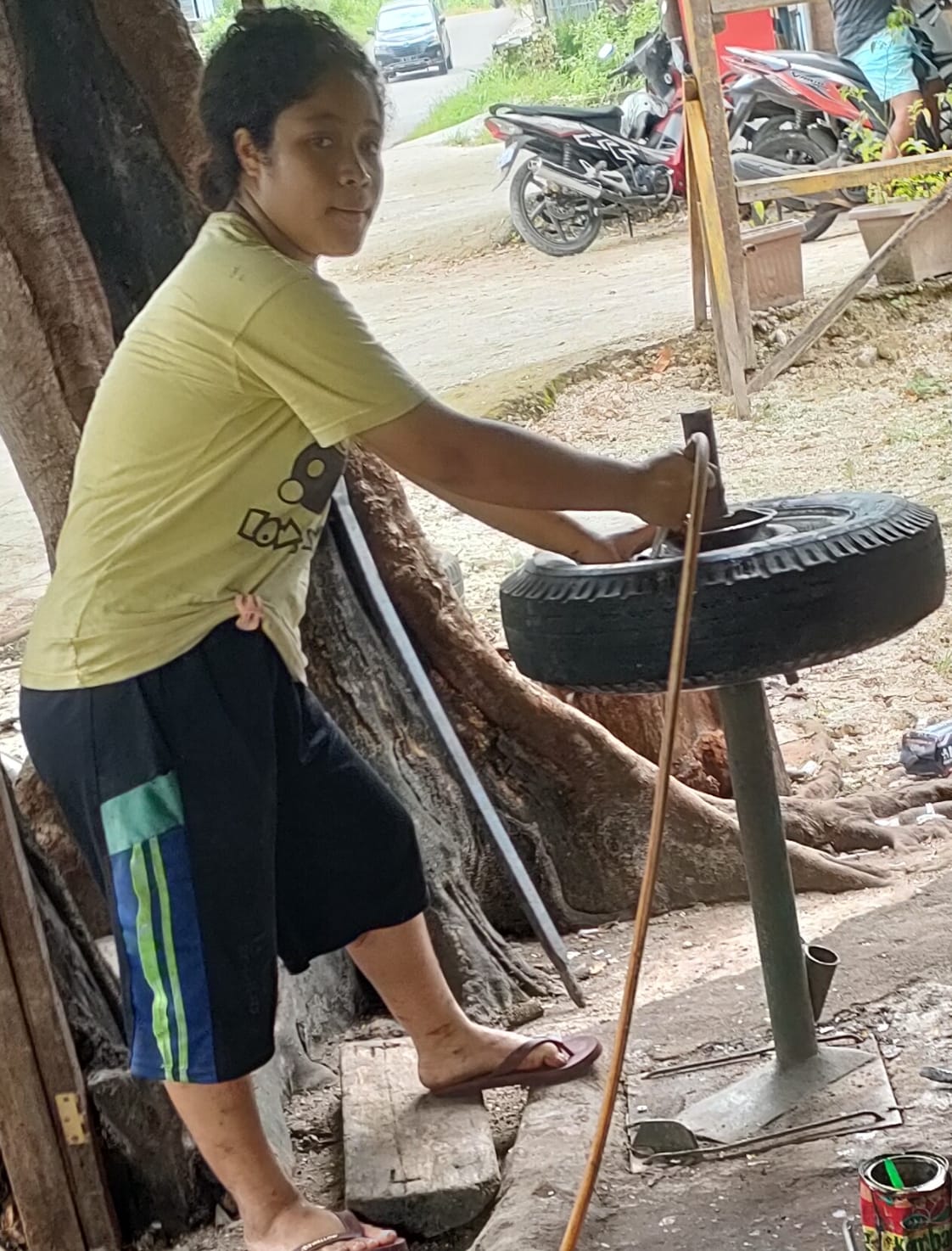 EXPONTT.COM – Febri Leo, adalah siswi SMP 7 Kota Kupang Kolhua Kupang. Selain cerdas di sekolah, Febri demikian ia disapa menjadi tulang punggung keluarga dalam mencari nafkah dengan bekerja sebagai penambal ban mobil atau ban sepeda motor. Parasnya cantik, tetapi bertenaga kuat layaknya tenaga pria muda.