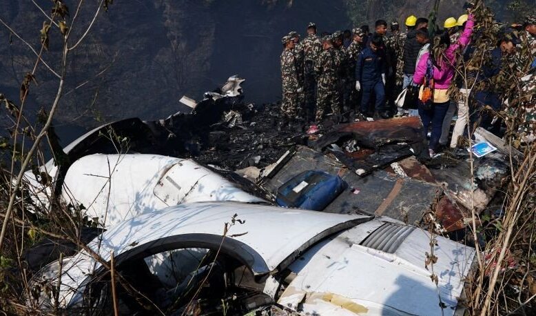 Ratusan petugas penyelamat menjelajahi lereng bukit tempat pesawat yang membawa 72 orang dari ibu kota Kathmandu.