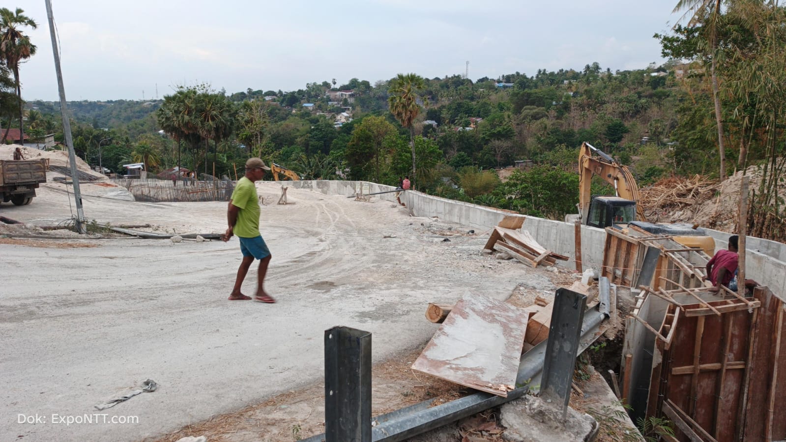 Pantauan Expo NTT pengerjaan proyek telah sampai pada pengerjaan dinding beton penahan dan drainase.