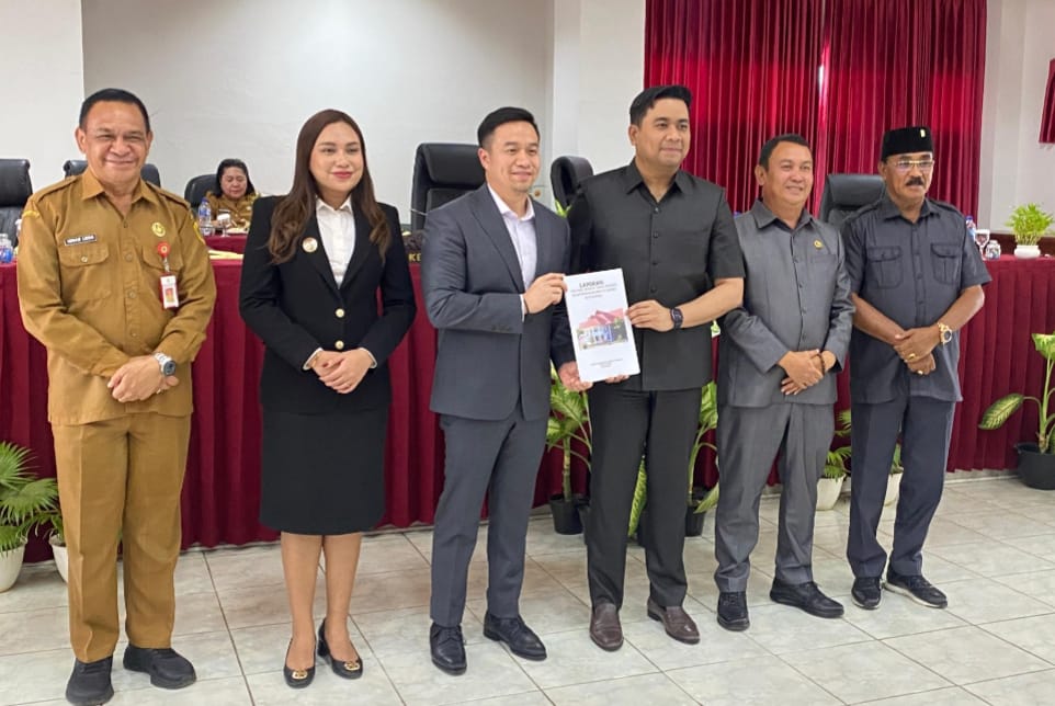 Ketua DPRD Kota Kupang, Ricahrd Odja menyerahkan laporan Masa Persidangan III Tahun 2024/2025 kepada Wali Kota Kupang saat Sidang Paripurna, Selasa, 14 Oktober 2025 / foto: Gorby Rumung