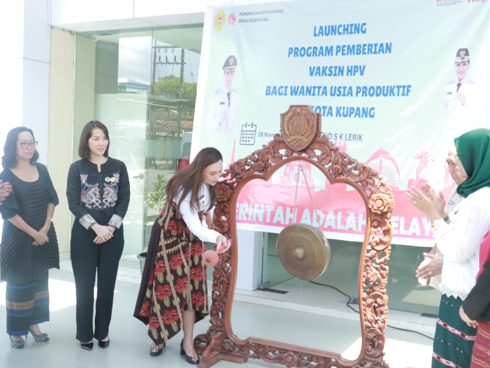 Peresmian program ditandai dengan pemukulan gong oleh Wakil Wali Kota Serena, disusul penyuntikan vaksin perdana oleh Ketua TP PKK Kota Kupang, dr. Widya Cahya.
