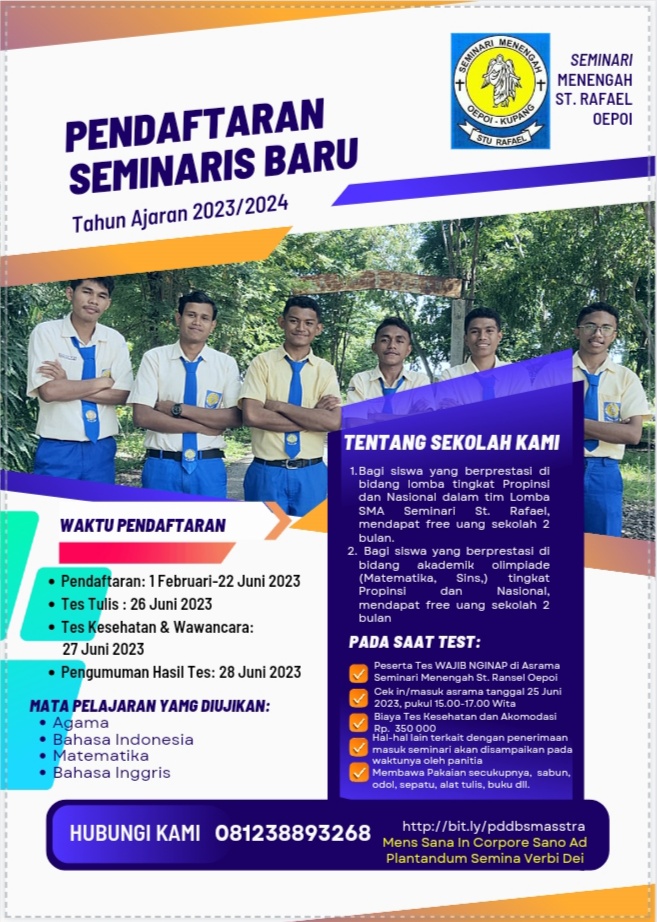 Berikut informasi PPDB SMA Seminari Santo Rafael Kupang TA 2023/2024