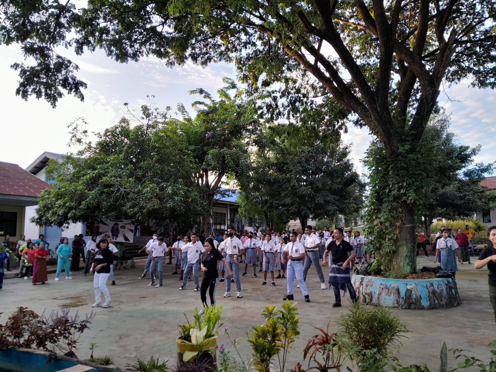 Dalam kegiatannya, para siswa melaksanakan kegiatan apel pagi dan senam pagi dengan diiringi lagu senam modern. Julie Laiskodat yang juga mengikuti senam pun tampak menikmati kebersamaan dengan para siswa.